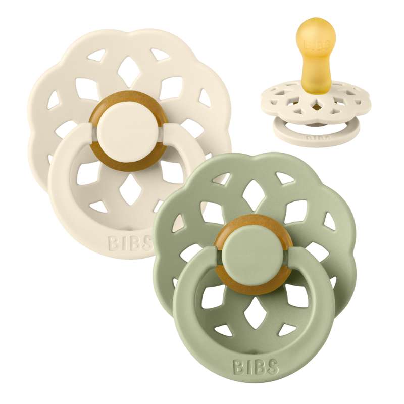 Bibs Boheme Napp - 2-Pack - strl. 2 - naturgummi - Elfenben/Salvia