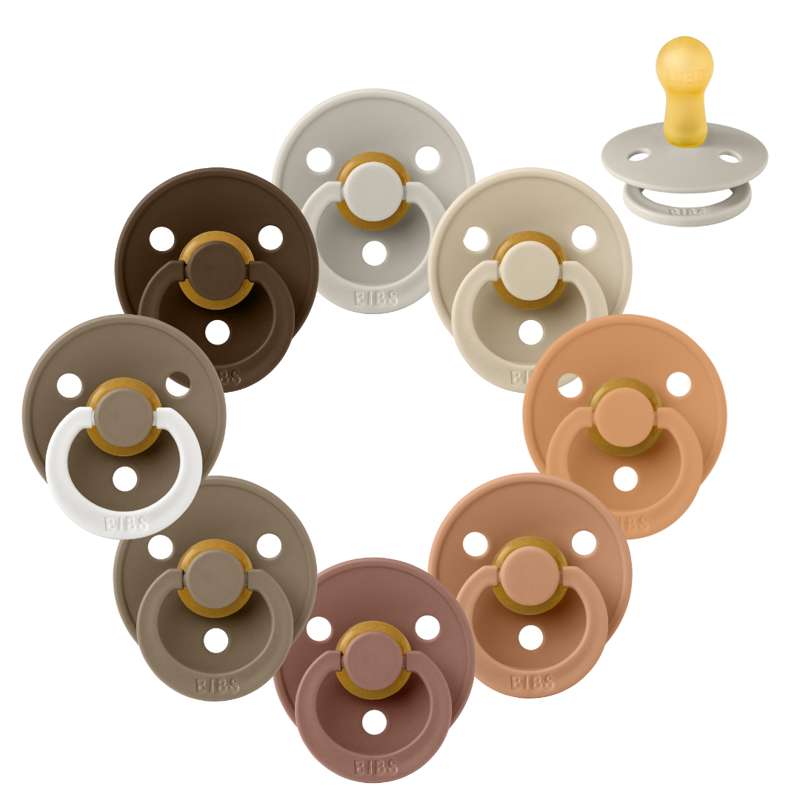 Bibs Rund Colour Napp - bundle - 8 st. - strl. 2 - GLOW - Mörk ek