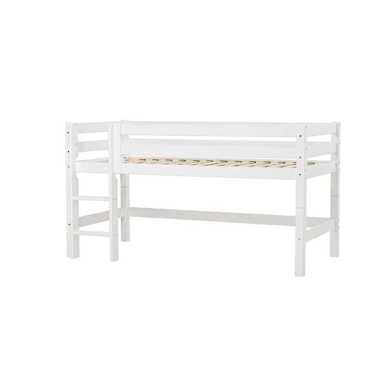 Hoppekids ECO Luxury - Halvhög loftsäng - 90x200 cm. - Flexibel inläggsbotten - Vit
