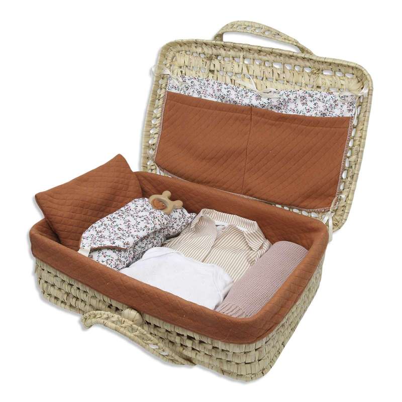 Memories by Así Docka - 43-46 cm. - Dockväska i flätad - m. Innehåll - Blomstertryck