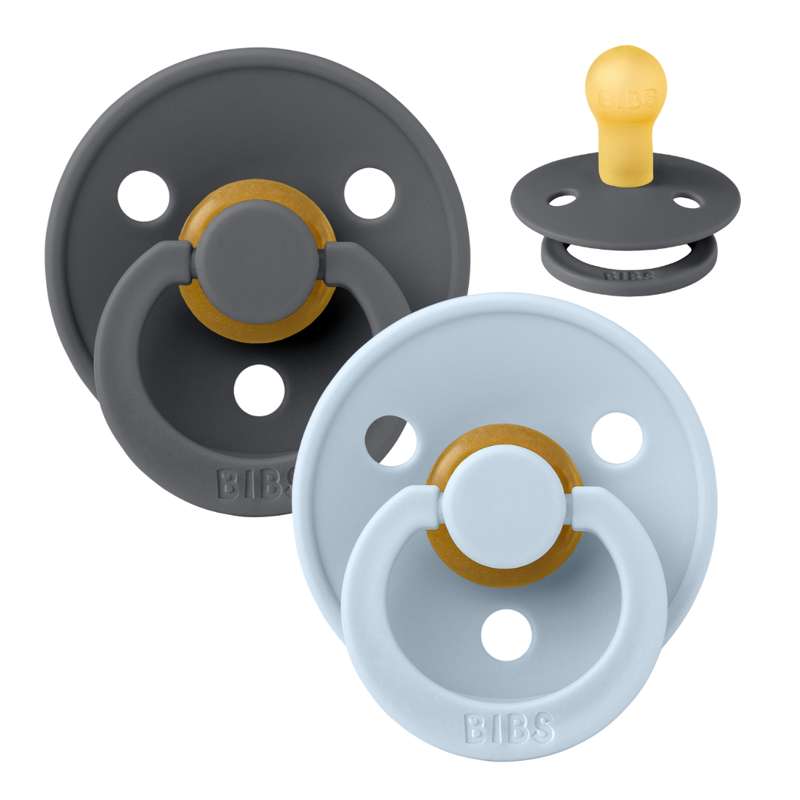 Bibs Rund Colour Napp - 2-Pack - strl. 1 - naturgummi - Järn/Baby Blå