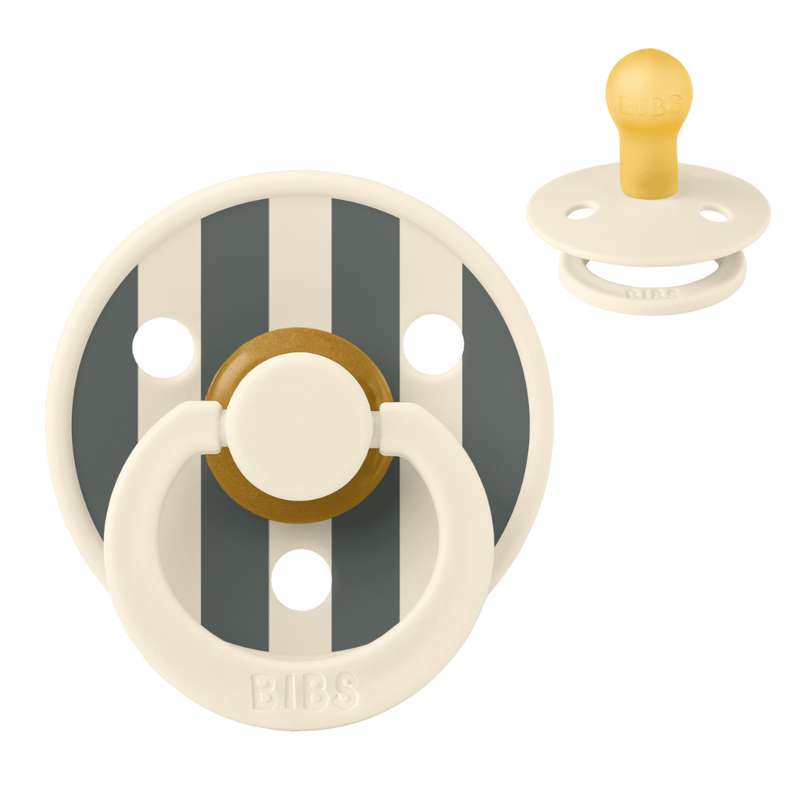 Bibs Rund Colour Napp - strl. 1 - naturgummi - Studio - Block - Elfenben/Furu