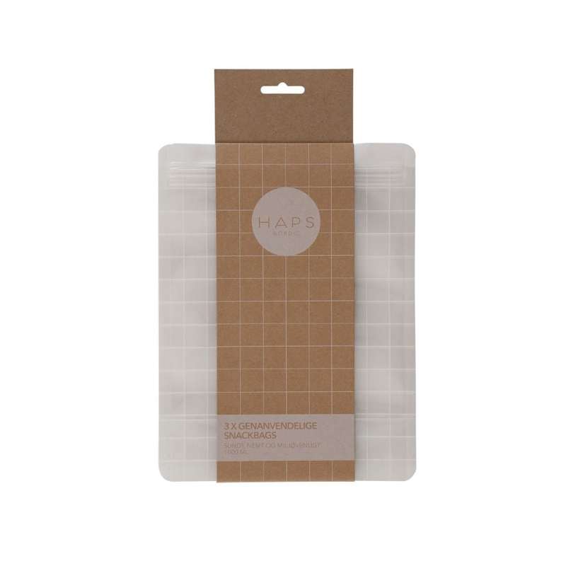 HAPS Nordic Återanvändbara Snackpåsar - 3-Pack - 1000ml - Transparent Kontroll