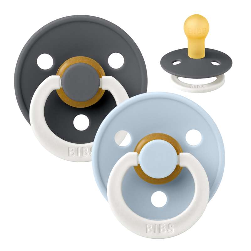 Bibs Rund Colour Napp - 2-Pack - strl. 2 - naturgummi - GLOW - Järn/Baby Blå