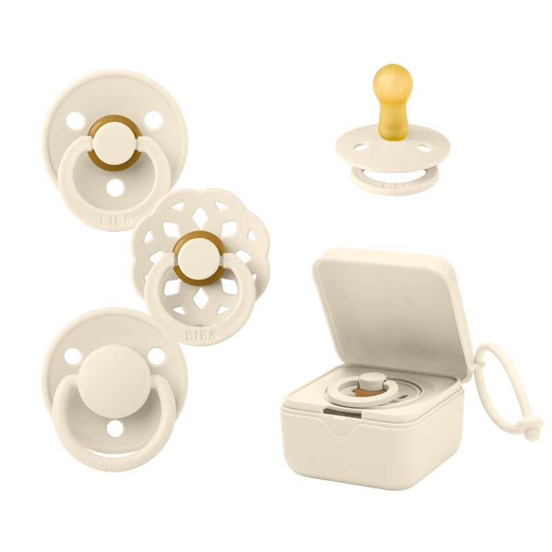 Denna bundle består av 3 st. BIBS nappar i storlek 2. Alla nappar har et runt nappar i naturgummi. Likaså medföljer en nappbox med plats för de tre napparna.