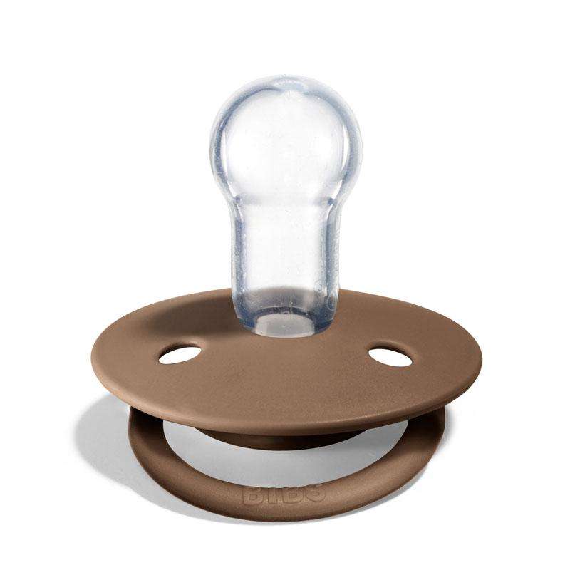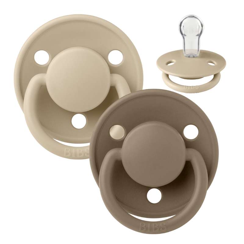 BIBS De Lux erbjuds som den enda modellen i strl. one size. Napphuvudet är runt, tillverkat av silikon och rekommenderas för barn i alla åldrar.
