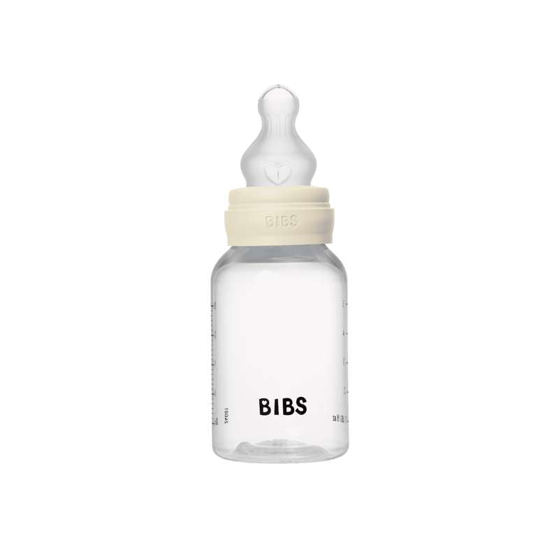 BIBS Flaska - Sutteflaskeset - Plast - Silikon/Långsam Flöde/Rund - 150 ml. - Elfenben