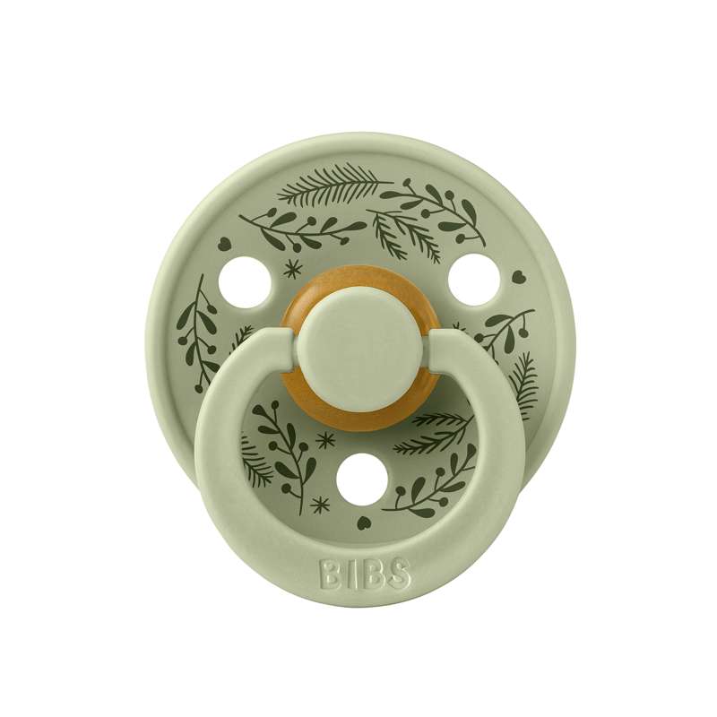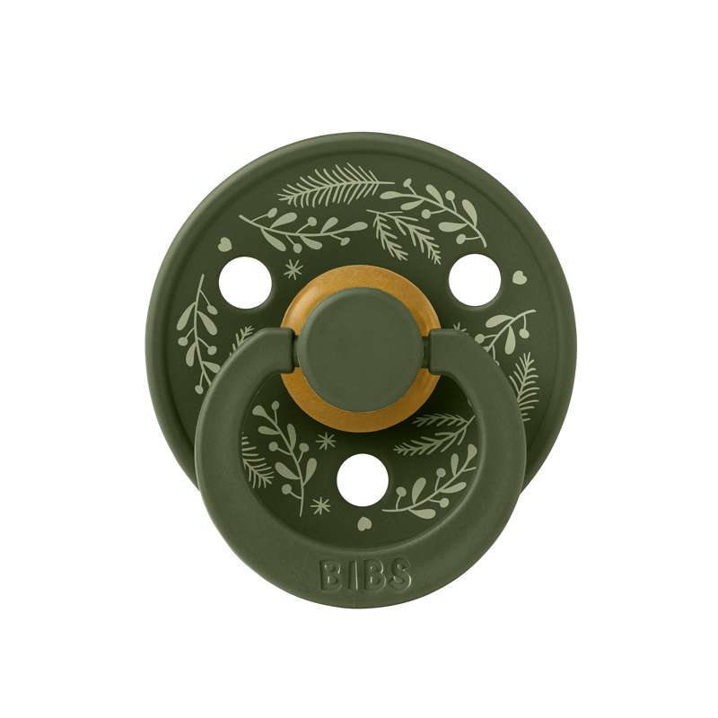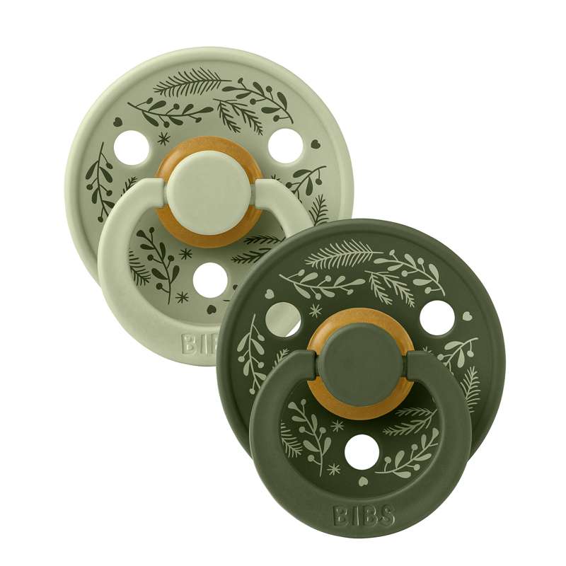 BIBS Rund Colour napp - 2-Pack - strl. 1 - naturgummi - Holiday Leaf - Jaktgrön