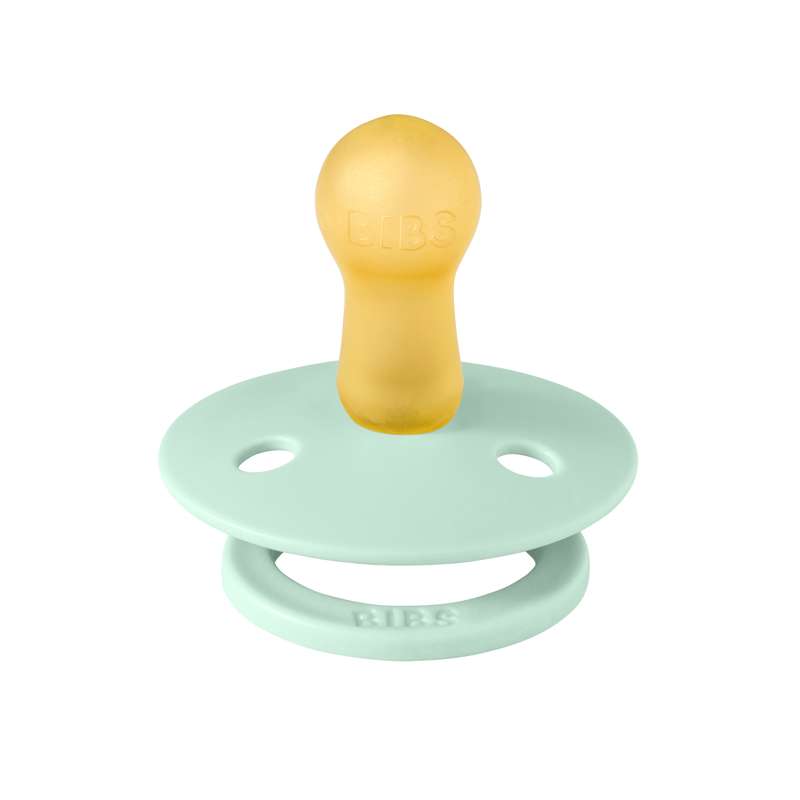 BIBS De Lux erbjuds som den enda modellen i strl. one size. Napphuvudet är runt, tillverkat av silikon och rekommenderas för barn i alla åldrar.