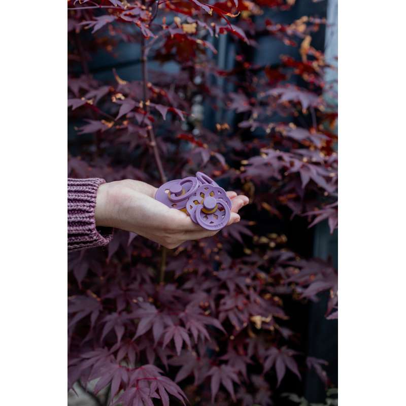 BIBS De Lux erbjuds som den enda modellen i strl. one size. Napphuvudet är runt, tillverkat av silikon och rekommenderas för barn i alla åldrar.