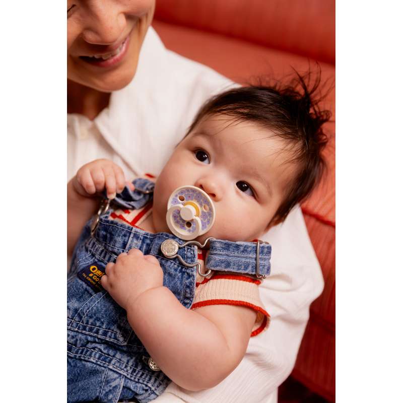 Du kommer omedelbart att få fjärilsvibbar när du ser den breda och vackra skölden på BIBS Couture-nappen. Den har en Anatomisk napp som är böjd i toppen för en naturlig passform till barnets gom med en vinklad spets för enkel placering av tungan. Skölden är noggrant designad med stora hål för att minska risken för uppbyggnad av fukt från saliv, vilket kan orsaka utslag runt munnen. Couture finns både i silikon och naturgummi, i storlek 1 och 2.