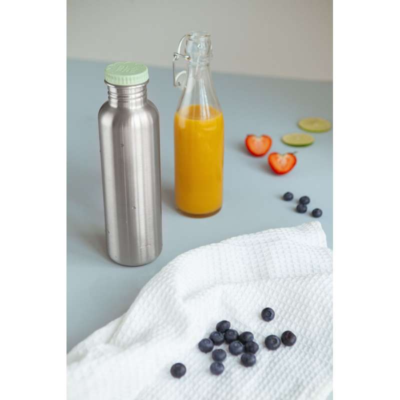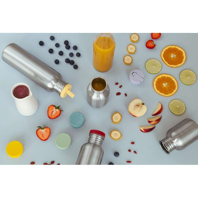 Flaskan är utrustad med et skruvkork, men det går att köpa en vippspytt i favoritfärgen.