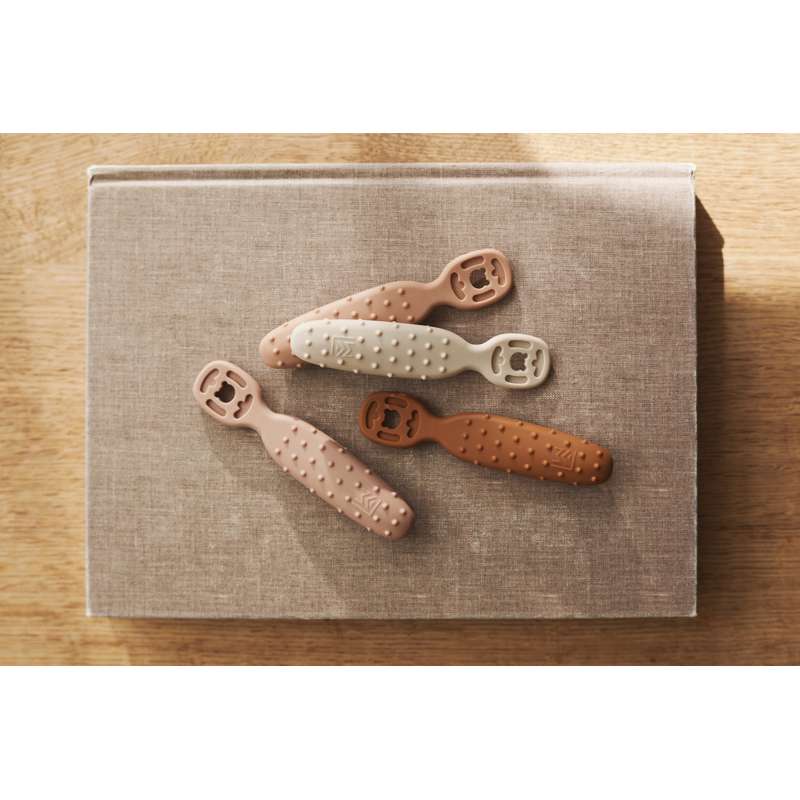 Varenummer: LIE-LW19686_1885Låt dina små börja lära sig att äta själva med de unikt designade Caelia-skedarna. Hålen och den nubbiga ytan på skeden säkerställer att moset stannar kvar när din baby för maten från skålen upp till munnen och hjälper till att bygga de små självständiga matätares självförtroende. Skedar i et unikt design för bebisar som håller på att lära sig att äta själva Tillverkad i mjuk och flexibel silikon Den nubbiga ytan ser till att maten sitter fast när barnet för maten upp till munnen Använd den till olika typer av mos Stärker finmotoriken och stimulerar känselsinnet Skonsam mot tandköttet Kan diskas i diskmaskin Mått: Höjd (cm) 12; Bredd (cm) 2,5; Djup (cm) 1,6