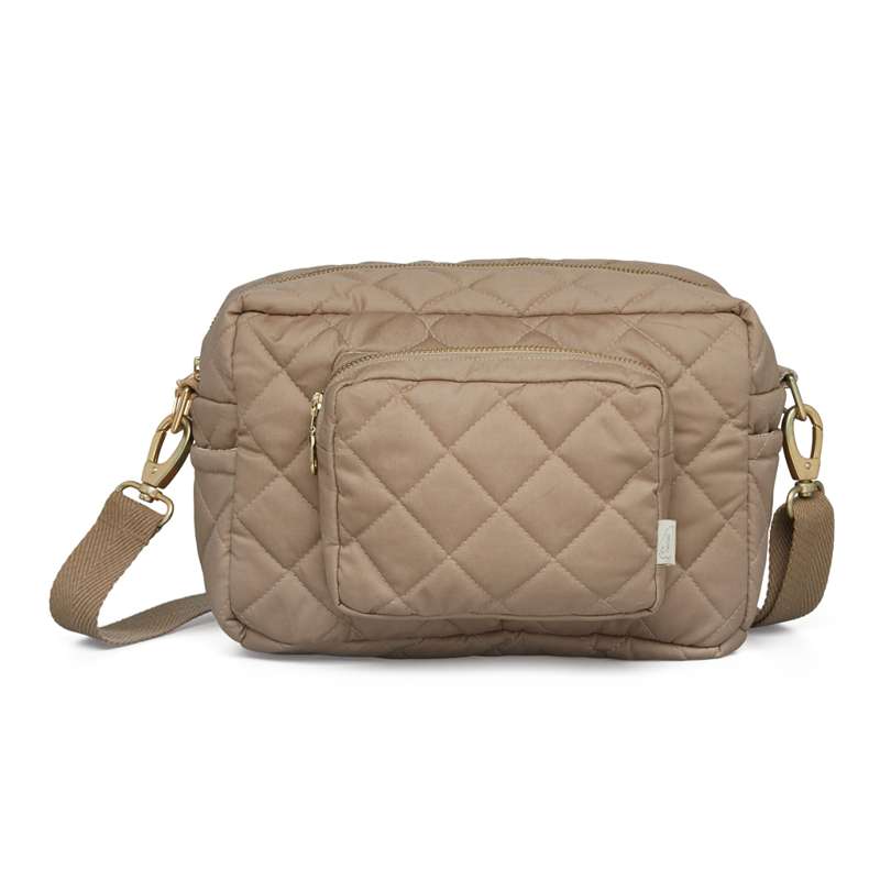 Funktionell och stilren quiltad skötväska som också fungerar som en crossbody-väska.