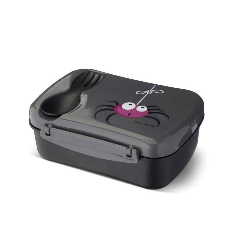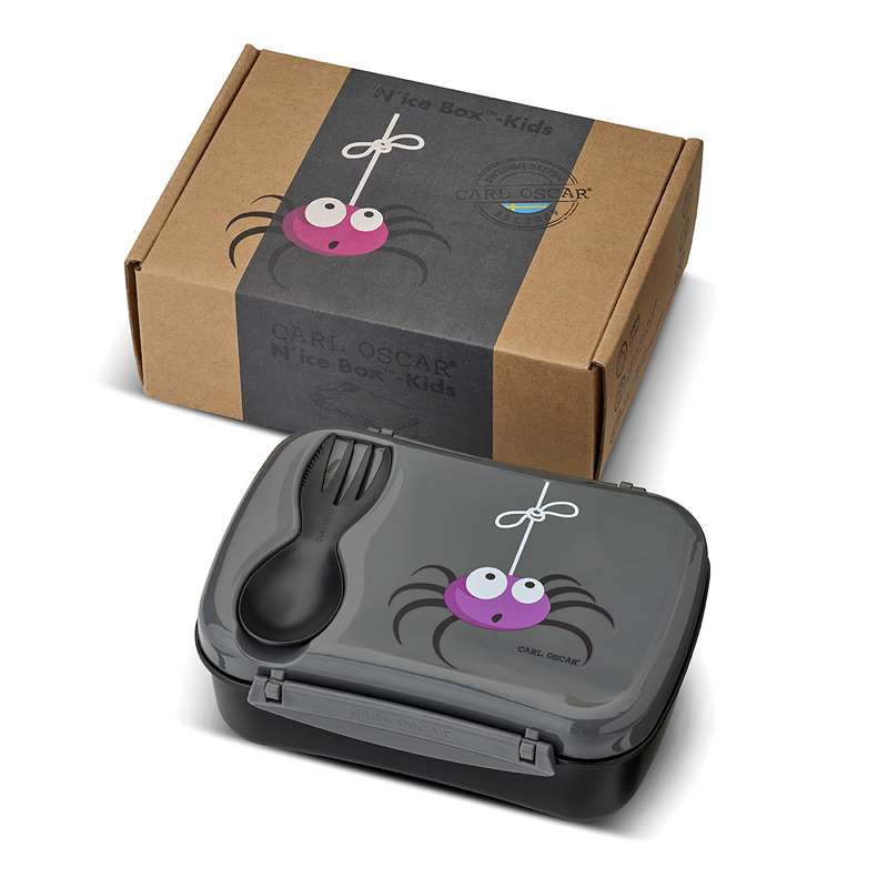 N'ice Box Kids med kylklamp från Carl Oscar. Fin Grå färg med en söt spindel på locket.