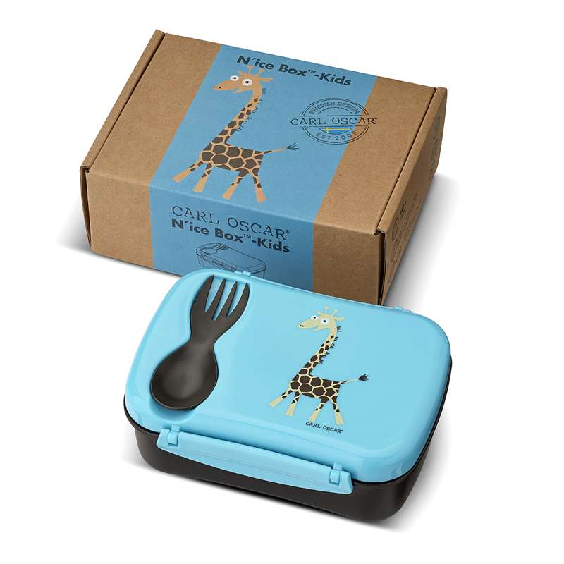 N'ice Box Kids med kylklamp från Carl Oscar. Vacker turkos färg med en söt giraff på locket.