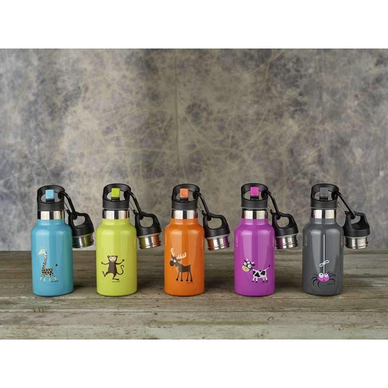 Termoflaskan kommer med två olika lock - ett skruvlock i rostfritt stål, samt ett lock med ett sugrör som kan vippas upp. Det gör flaskan mer barnvänlig än många andra drickflaskor på marknaden, då den är lätt att dricka ur för de allra minsta.