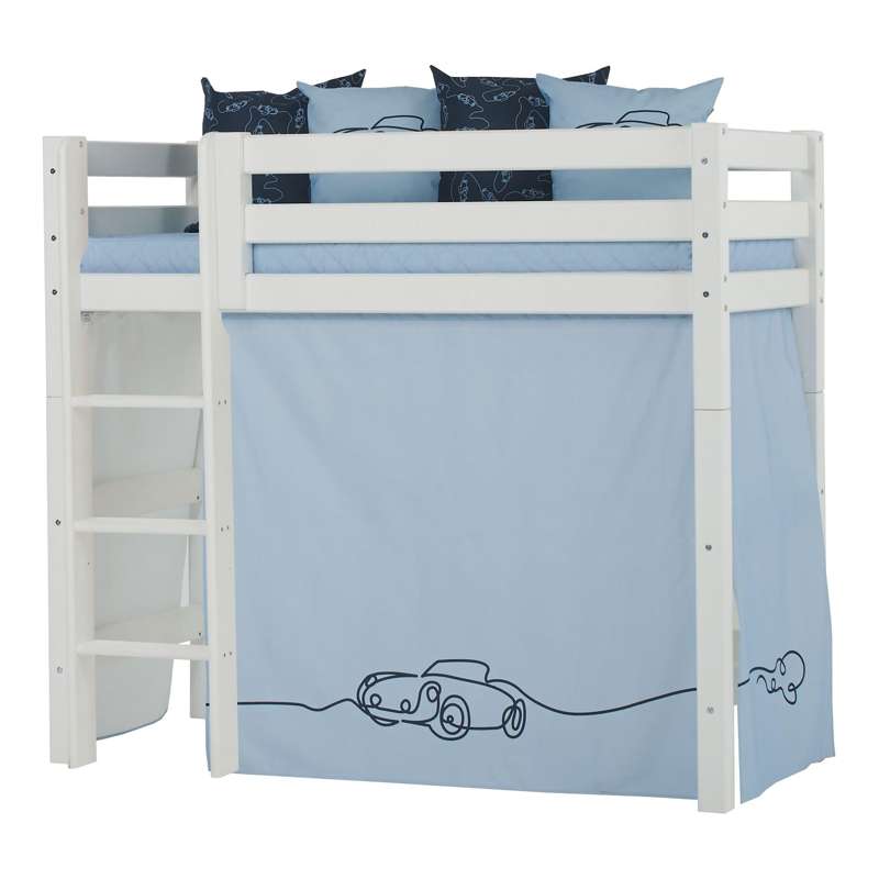 Cool CARS gardin till ECO Dream och ECO Luxury sängar från Hoppekids. Med det smarta gardinet blir utrymmet under sängen till et ett magiskt ställe där endast fantasin sätter gränser. Oavsett om det är tid för fördjupning eller lek och äventyr, är grottan bakom gardinet helt perfekt. Om det ska vara extra mysigt kan grottan inredas med mjuka mattor, kuddar, ljusslingor och andra mysprylar. Gardinet passar till halvhöga sängar och våningssängar från Hoppekids. Gardinet är en del av CARS universum där det är full fart på de fina textilierna. I universum är bilar det stora temat och den enskilda designen och de fina blå färgerna gör universum helt oemotståndligt för varje liten bilentusiast.