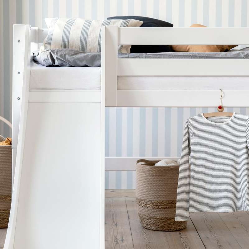 Hoppekids ECO Luxury - Halvhög loftsäng m. Rutschkana - Sned Stege - Flera Storlekar - Vit