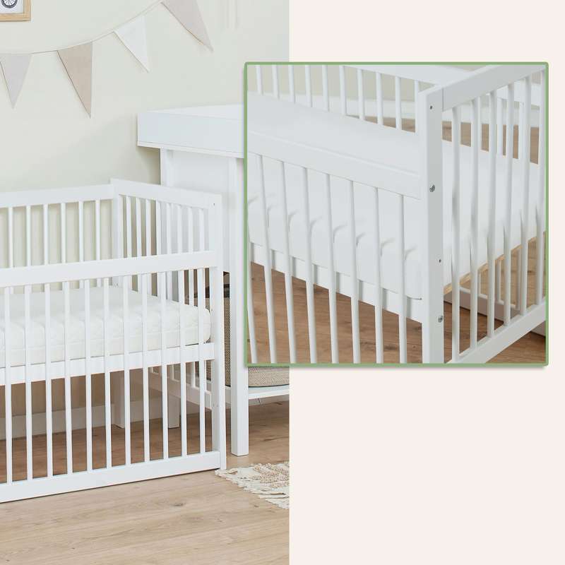 Varenummer: HOP-96-45-001-PFIDA-MARIE babysängen är en tidlös, enkel Spjåalsang designad med både säkerhet och komfort i åtanke. Den passar en standardmadrass på 60x120 cm och har en justerbar botten med tre olika höjdinställningar samt praktiska sidostycken som kan höjas eller sänkas med 16 cm. Detta skonar din rygg, samtidigt som det säkerställer att din lilla alltid sover säkert.