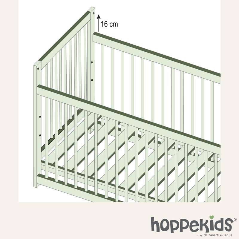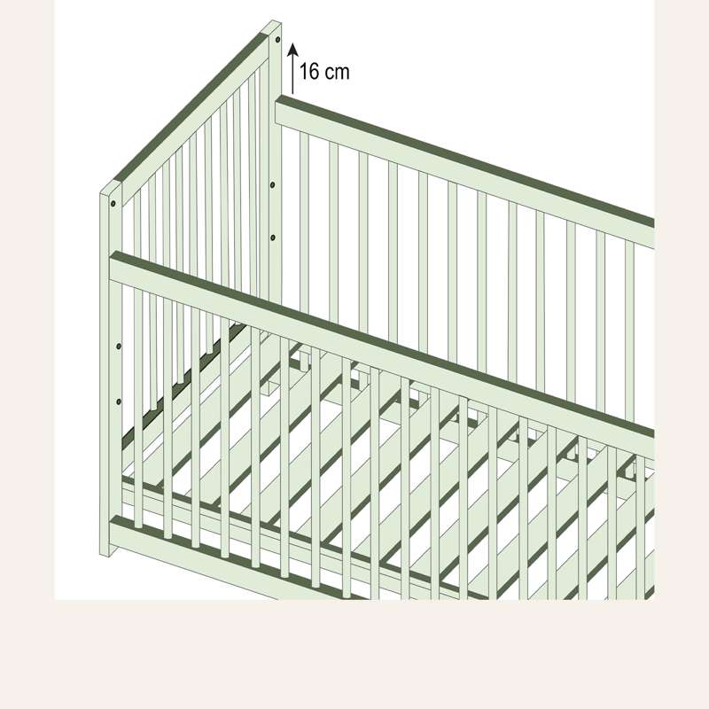 - 16 cm över golvet – använd denna inställning när ditt barn kan stå, så att de är säkra i spjälsängen.