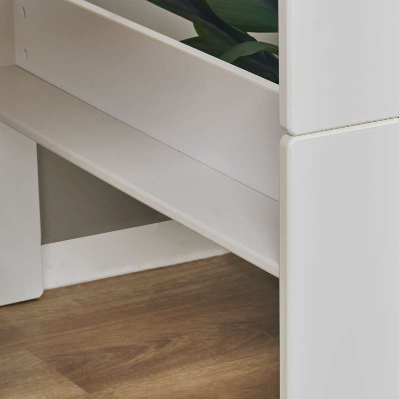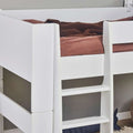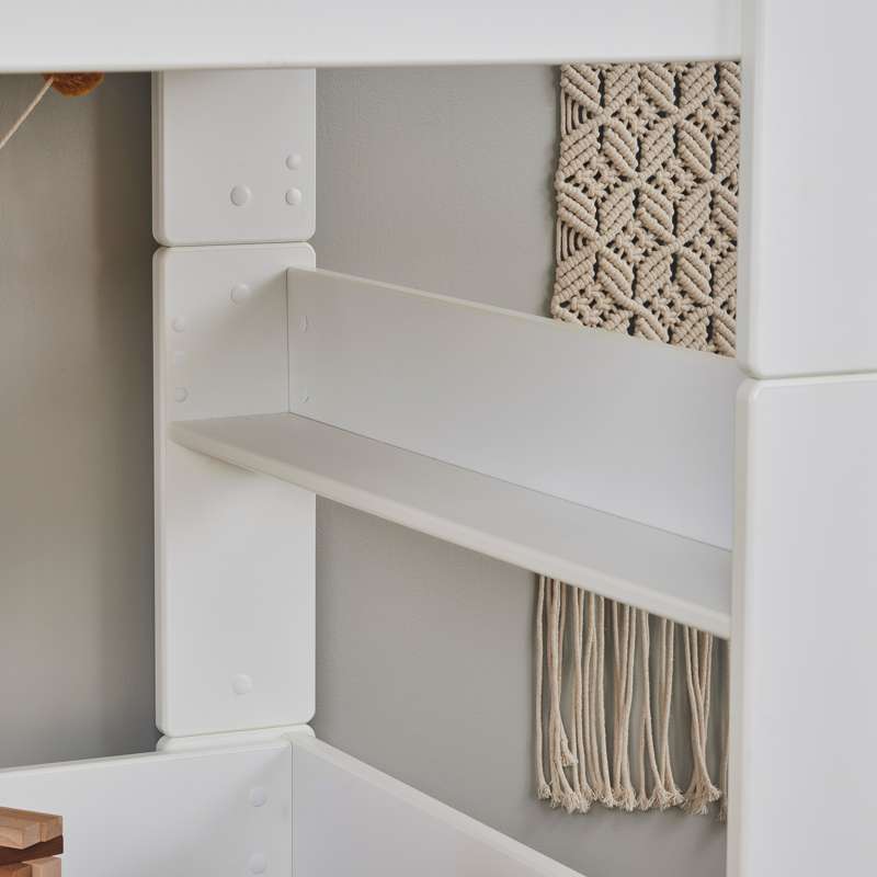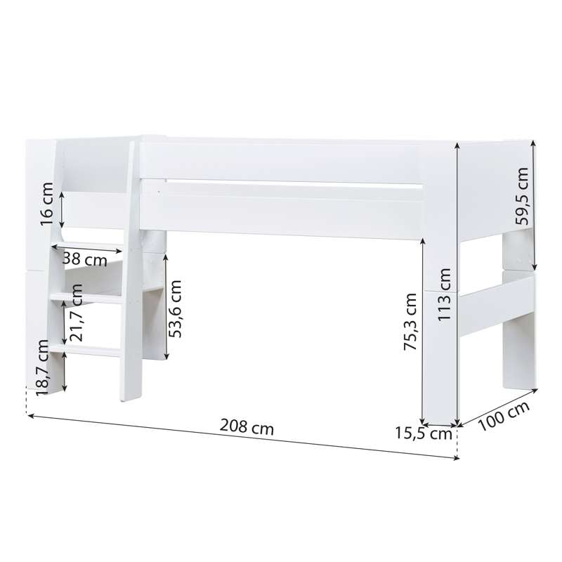 Den halvhöga sängen är konstruerad av MDF, vilket säkerställer en solid och pålitlig bas som kommer att hålla i årevis. Den släta ytan är lätt att rengöra och underhålla, vilket gör det till en idealisk lösning för föräldrar som värdesätter både stil och funktionalitet. Sängen är designad med både säkerhet och estetik i tankarna och är en bra lösning för barnrum med begränsad plats, då den utnyttjar rummets höjd. Med en lägre höjd än den traditionella Loftsäng, erbjuder den halvhöga sängen en optimal balans mellan platsbesparing och funktionalitet.