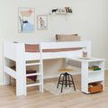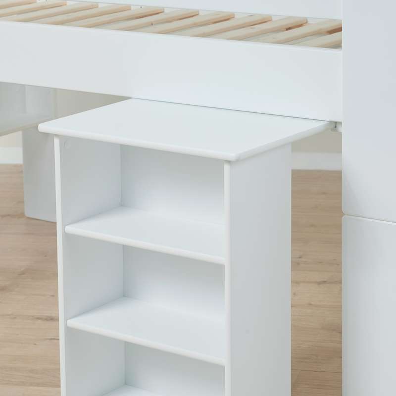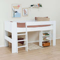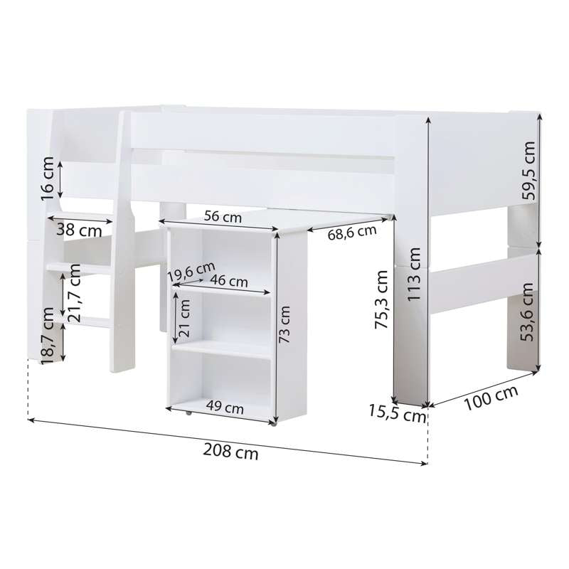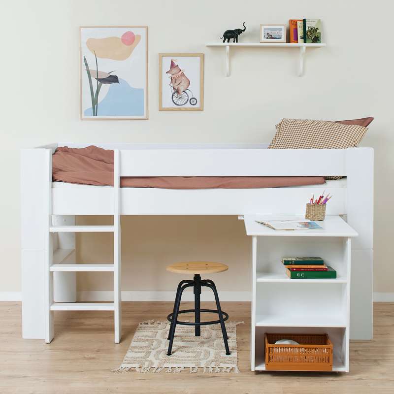 Varenummer: HOP-SFK-A14-1Hoppekids PURE loftsäng med skrivbord finns i en tidlös och klassisk Vit färg, designad med komfort och säkerhet i åtanke. Med en generös storlek på 90x200 cm erbjuder sängen gott om plats för det växande barnet och tillräcklig rörelsefrihet för en god natts sömn. Skrivbordet skapar et ett dedikerat arbetsområde för studier, ritning eller kreativa aktiviteter.