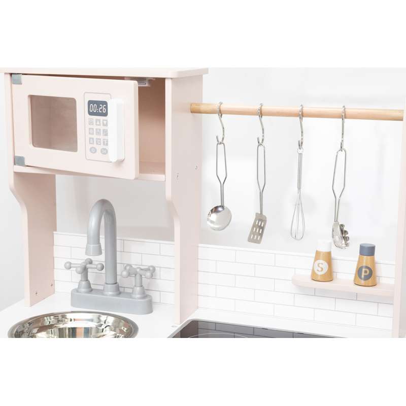 Kid'oh Chefs kök är idealiskt för både enmanslek och lek med vänner eller syskon. Här kan det övas, imiteras och experimenteras med kända vardagssituationer – och barnen kommer att älska känslan av att vara “de vuxna i köket”.
