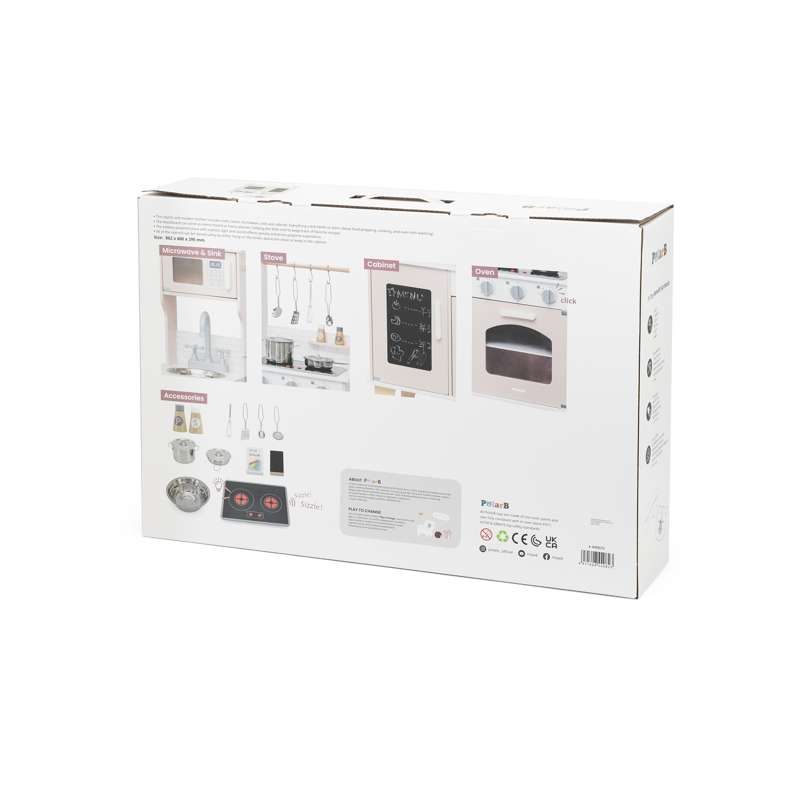 Med realistiska detaljer som spisplatta med ljus och ljud, vred och ugnslucka, får barnet en lek som både engagerar och inspirerar. Den medföljande griffeltavlan är perfekt för att skriva dagens meny eller små meddelanden, medan tillbehöret – grytor, skedar, kryddburkar och mycket mer – gör leken komplett från första dagen.