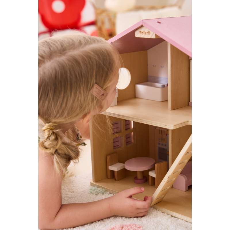 Dette hyggelige og smukt indrettede dukkehus er som skabt til fantasifuld leg og mange timers underholdning. Det indbyder børn til at skabe deres egne små verdener, fyldt med hverdagssituationer, historier og rollelege.