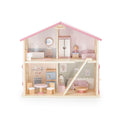 Dukkehuset indeholder fire detaljerede rum: køkken, stue, badeværelse og soveværelse – alle med matchende tapet, møbler og tilbehør, der giver en virkelighedstro legeoplevelse. I alt medfølger 16 dele, herunder møbler og små accessories.