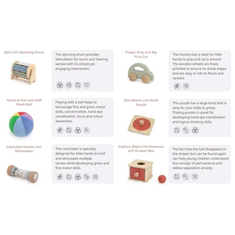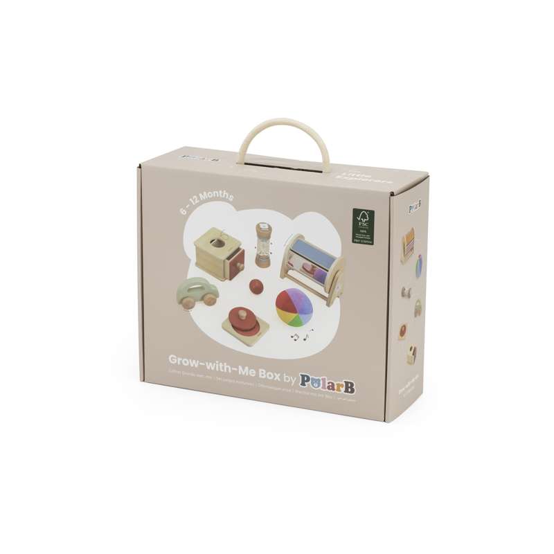 Grow-with-Me-lådor stöder barns lärande under viktiga utvecklingssteg med leksaker som är anpassade till deras ålder. De sparar också föräldrar tid och energi genom att välja åldersanpassade, säkra och lärorika leksaker från marknaden.