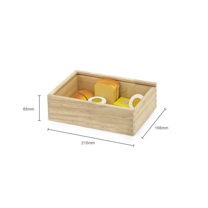 Start dagen med leg og fantasi! Dette fine morgenmadssæt i træ indeholder alt, hvad barnet skal bruge for at servere et lækkert og sjovt morgenmåltid. Sættet leveres med et skærebræt, en legetøjskniv og en praktisk trækasse med akryllåg til nem opbevaring og oprydning.