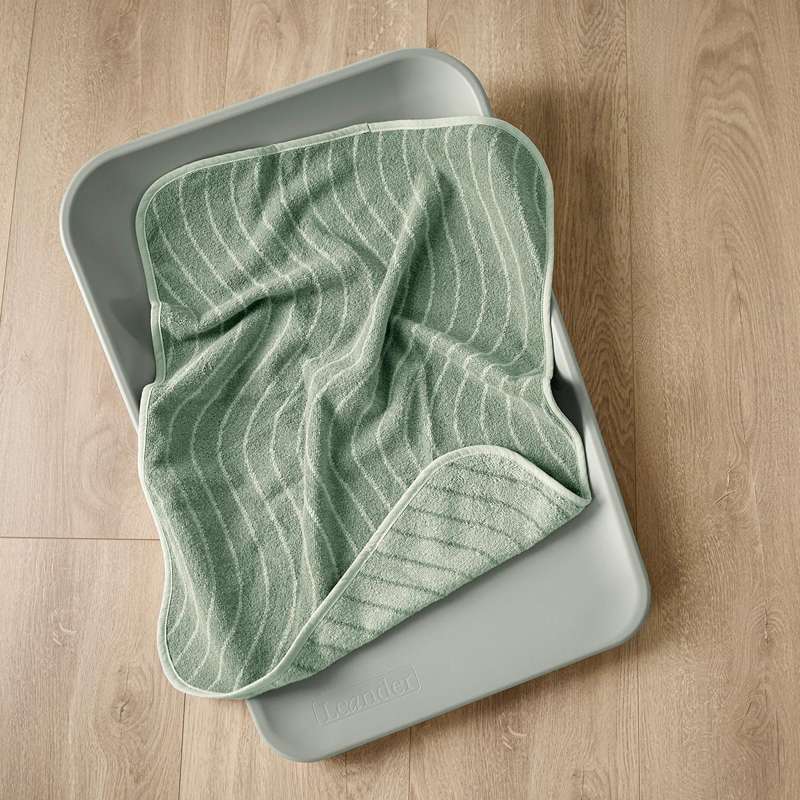 Den mjuka Leander toppen är gjord av ekologisk bomullsfrotté och passar perfekt till formen på Leander Matty™ skötbädden och Leander Wally™ väggmonterat skötbord. Använd den som et liten handduk, eller lägg den under din baby när du byter blöja. Det kommer att skydda din skötbädd och hjälpa dig om det skulle hända en olycka. Toppen är vändbar. Det ger dig två olika sidor och färger och därmed fler möjligheter för styling. Toppen matchar färgerna på Leander Matty™ skötbädden.