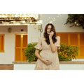Kort graviditetsklänning från Mamalicious med volangdetaljer, perfekt för en varm sommardag.