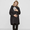 Det medföljer två extra dragkedjepaneler: Et panel för den växande magen och et panel med plats för att bära ditt barn i sele.
