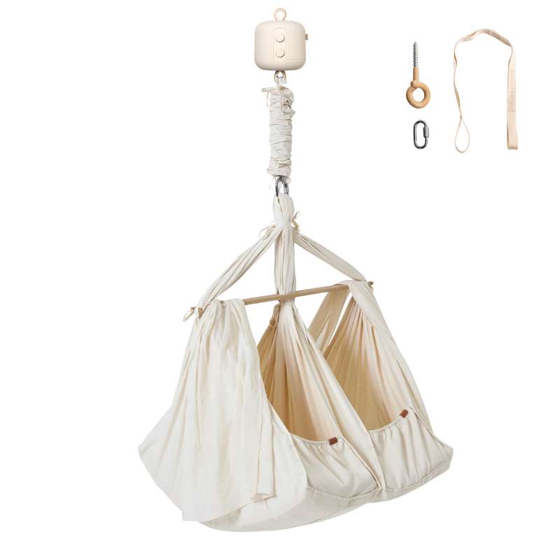 Hjälpa Bundle - Premium - Twin Slyngevugge m. Vuggemotor och Takupphängning - Naturlig