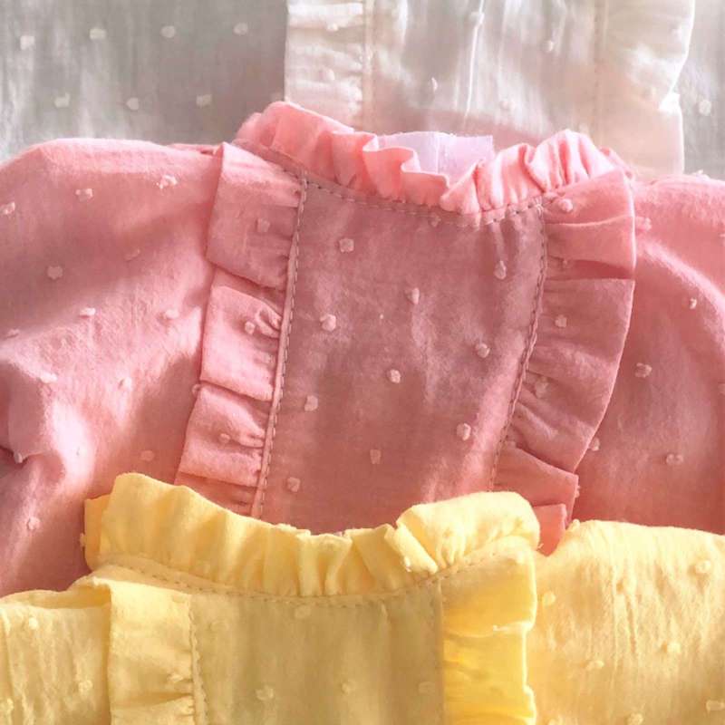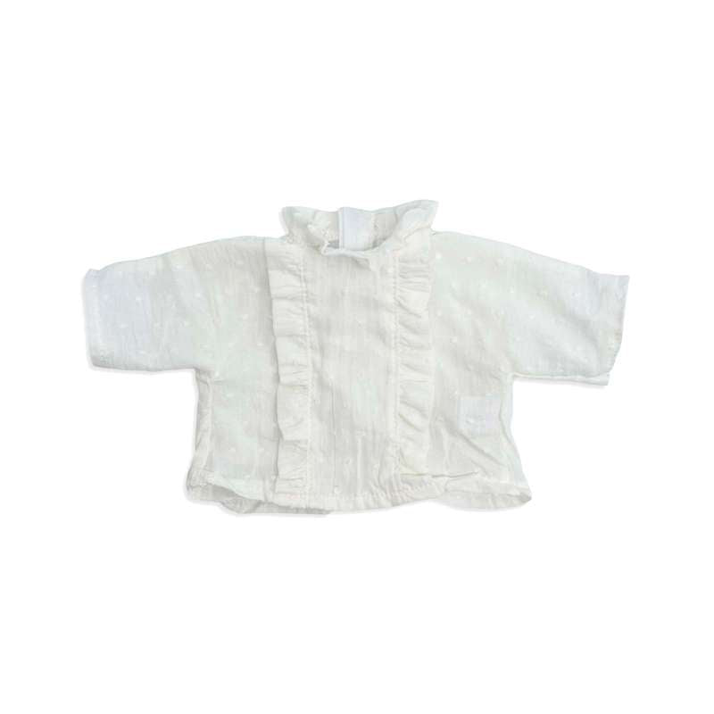 Söt skjorta i fluffig, vävd bomullsmusselin med romantisk kalvkrås.