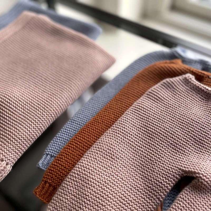 De långa byxorna är i en ribbstickad metervara med ribbkanter och har en härlig elastisk passform i midjan.