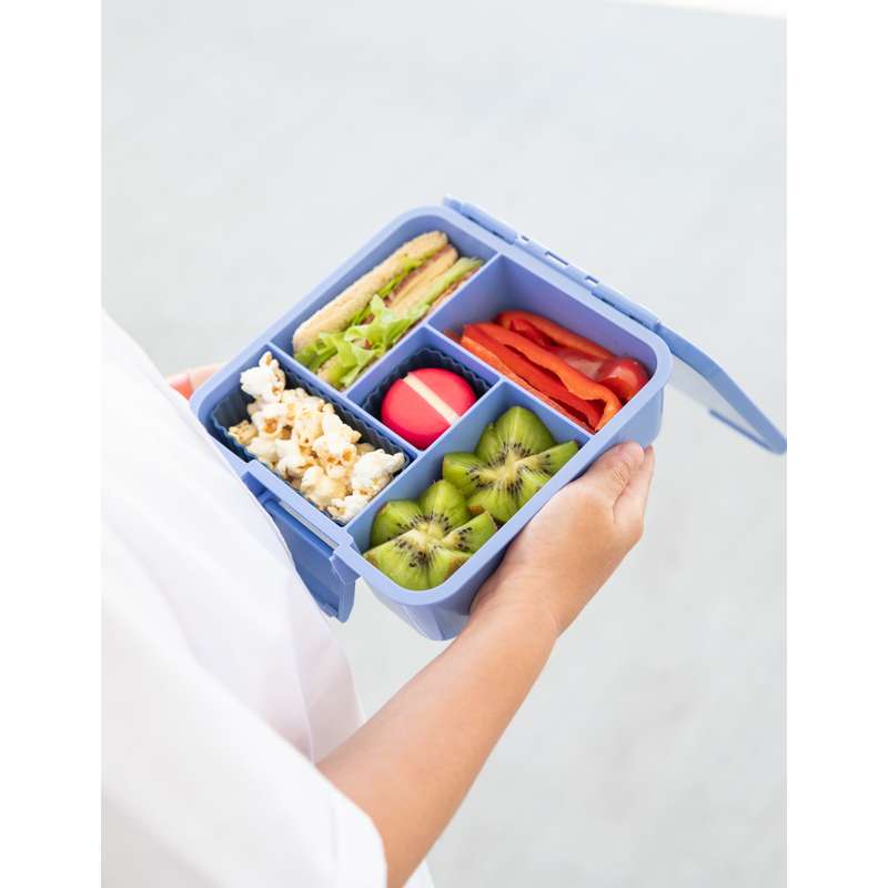 Bento 5:s mittfack är smart för exempelvis dressing, nötter, snacks eller liknande, medan de medelstora avlånga rummen är perfekta för livsmedel som tar lite mer plats. De rektangulära rummen kan också omvandlas till flera kvadratiska med en divider/avskiljare, så att lunchlådan blir mer mångsidig.