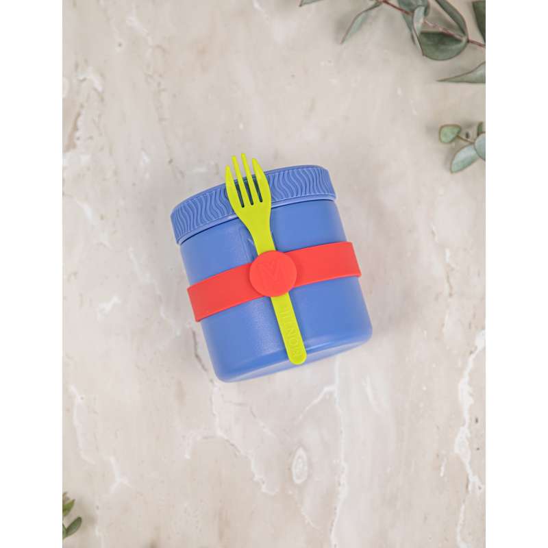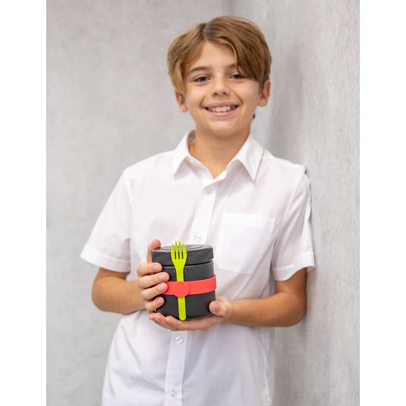 Sig hej då till att sakna bestick på språng! MontiiCo Bestickband är det smarta silikonbandet som håller en gaffel eller sked säkert fast vid din matlåda – redo att användas när som helst.