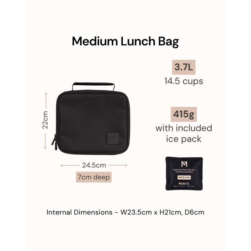 Kylväskan har ett vadderat handtag och har förutom matlådor också plats för kylklampar och tillbehör. Det medföljer också et MontiiCo 2.0 kylklamp i strl. Medium.