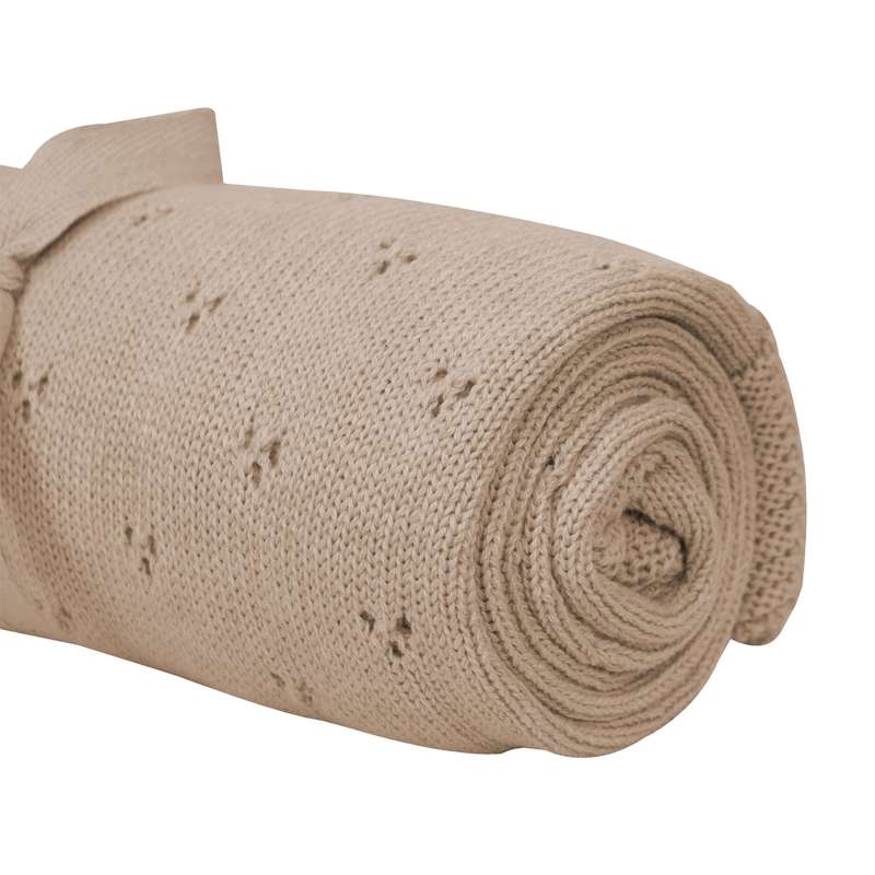 Det eleganta babytäcket från Oh’Naturel förenar hållbarhet, kvalitet och estetik i et tidlös design. Täcket är stickat i 100% GOTS-certifierad bomull och är därför mjukt mot känslig hud och tillverkat under ansvarsfulla förhållanden. Storleken på 80×100 cm gör det mångsidigt i vardagen: et ett varmt lager i spjälsängen, en trygg följeslagare till barnvagnen och en mysig kompis i soffan. Det fina hålmönstret ger et ett lätt, luftigt fall och bidrar till god andningsförmåga, så barnet hålls behagligt tempererat året runt.