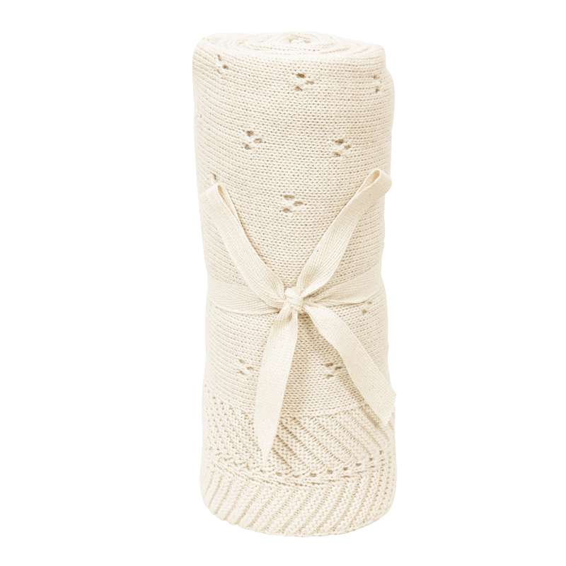 Den eleganta babyfilten från Oh’Naturel förenar hållbarhet, kvalitet och estetik i et tidlös design. Filten är stickad i 100% GOTS-certifierad bomull och är därför mjuk mot känslig hud och tillverkad under ansvarsfulla förhållanden. Storleken på 80×100 cm gör den mångsidig i vardagen: et ett varmt lager i spjälsängen, en trygg följeslagare till barnvagnen och en mysig kompis i soffan. Det fina hålmönstret ger et lätt, luftigt fall och bidrar till god andningsförmåga, så barnet hålls behagligt tempererat året runt.