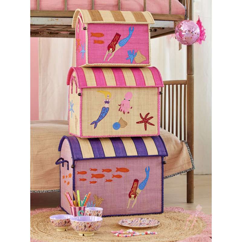 Raffiakorgarna är oumbärliga, användbara och superpraktiska för förvaring. Använd dem till leksaker, till kläder eller till småsaker som du inte riktigt vet vad du ska göra med – absolut det enklaste och finaste sättet för snabb städning.