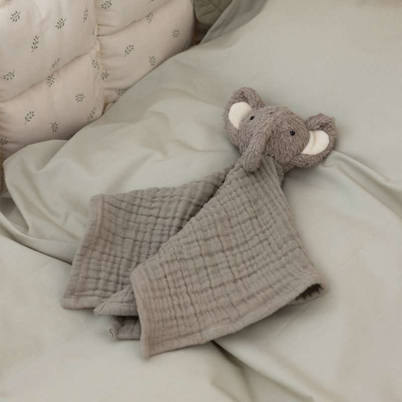 Finleys öron och snabel är härliga att klappa för trötta, små fingrar, och snuttefilten kan lätt bli en handdocka om det ska berättas livfulla godnattberättelser.