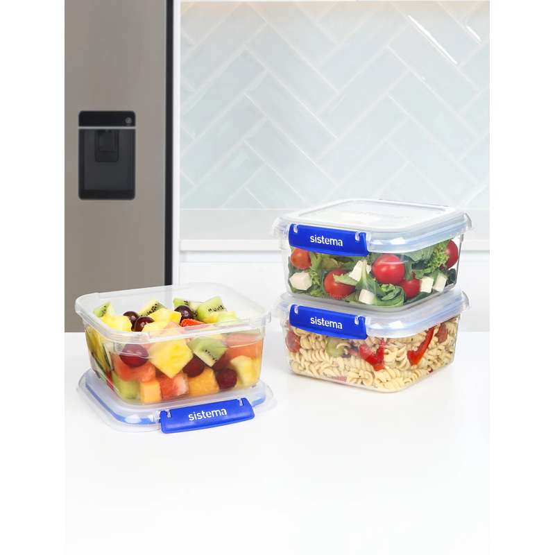 Sistema Matförvaring - Klip It Plus - Fyrkantig - 3-Pack - 1.15L - Blå