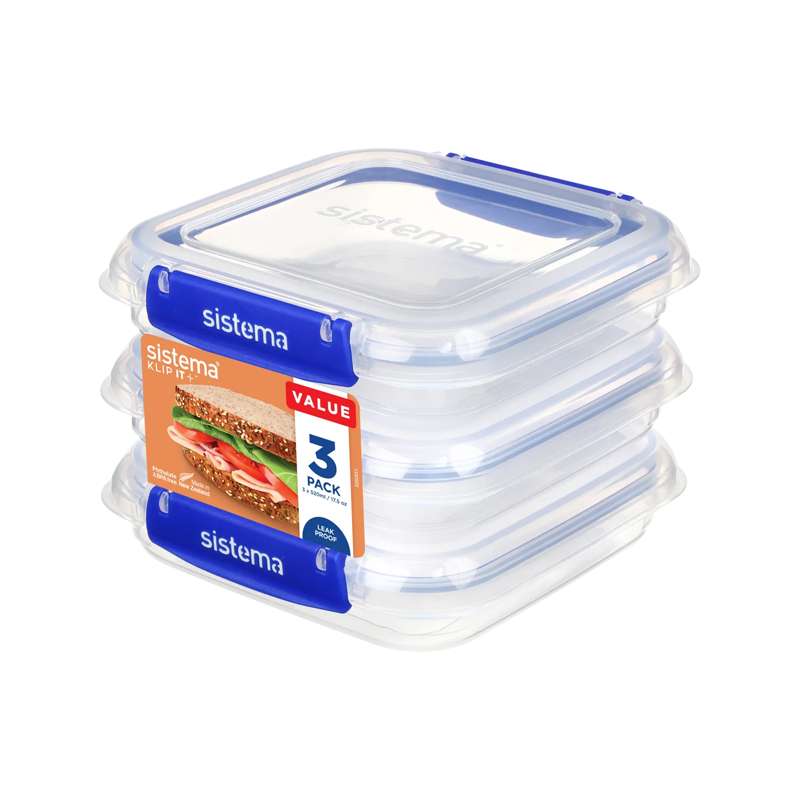 Sistema Matförvaring - Klip It Plus - Square - 3-Pack - 520ml - Blå
